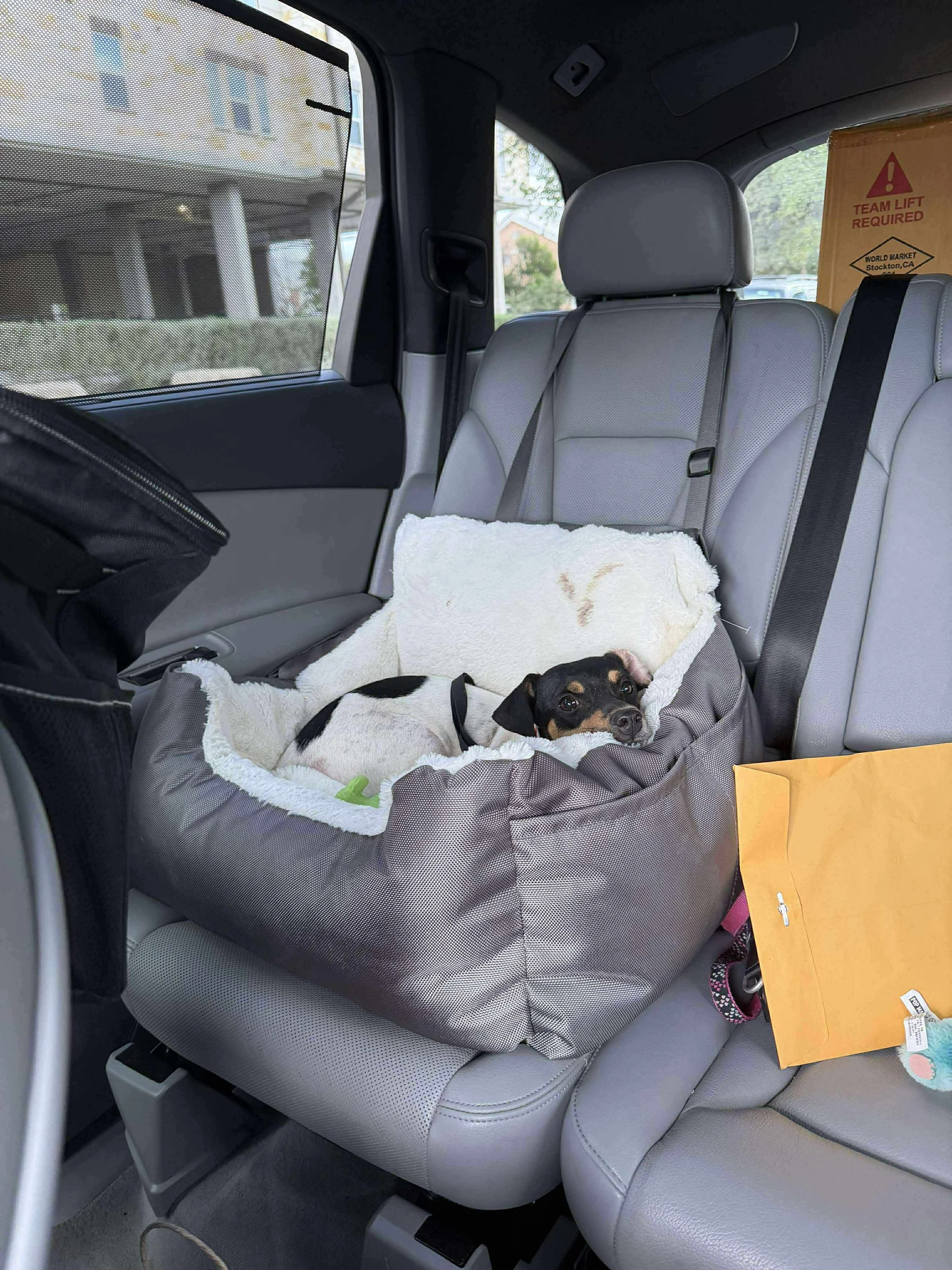 Benita is a sweet Chihuahua * Miniature Fox Terrier mix who is very easy-going and well-behaved. She absolutely loves playing with other dogs of all sizes and enjoys doing zoomies. When she doesn’t have a playmate, she entertains herself with her stuffed animals. She also loves being outside, especially when the back door is open so she can go in and out freely. She enjoys sunbathing and relaxing outdoors.