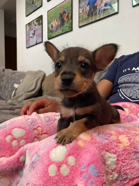 Bullseye was born in foster care on 17th January 2026. He has been lucky to experience a gentle, safe, happy upbringing with his mom in a wonderful foster home. He currently weighs 4.2lbs and his mama is a 20lbs Terrier Mix named Trixie.