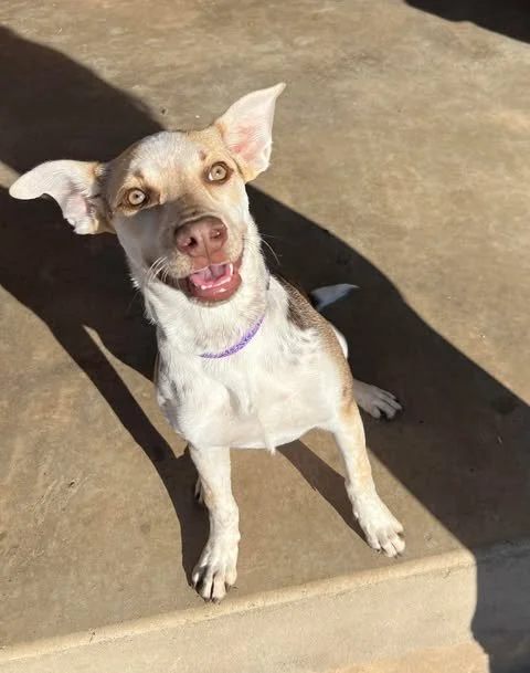Personality: Bunny is pure sunshine. She’s loving, happy, and deeply people-oriented. She wants to be near you, lean into you, and cuddle whenever possible. She is gentle & sweet, food motivated & eager to please, confident, social & friendly, gets along beautifully with all animals (dogs, cats and even horses!), does well with kiddos, is submissive and respectful with other dogs and is full of love & tails wags. She has that soft, joyful energy that makes her easy to live with. She’s just happy to be included.
