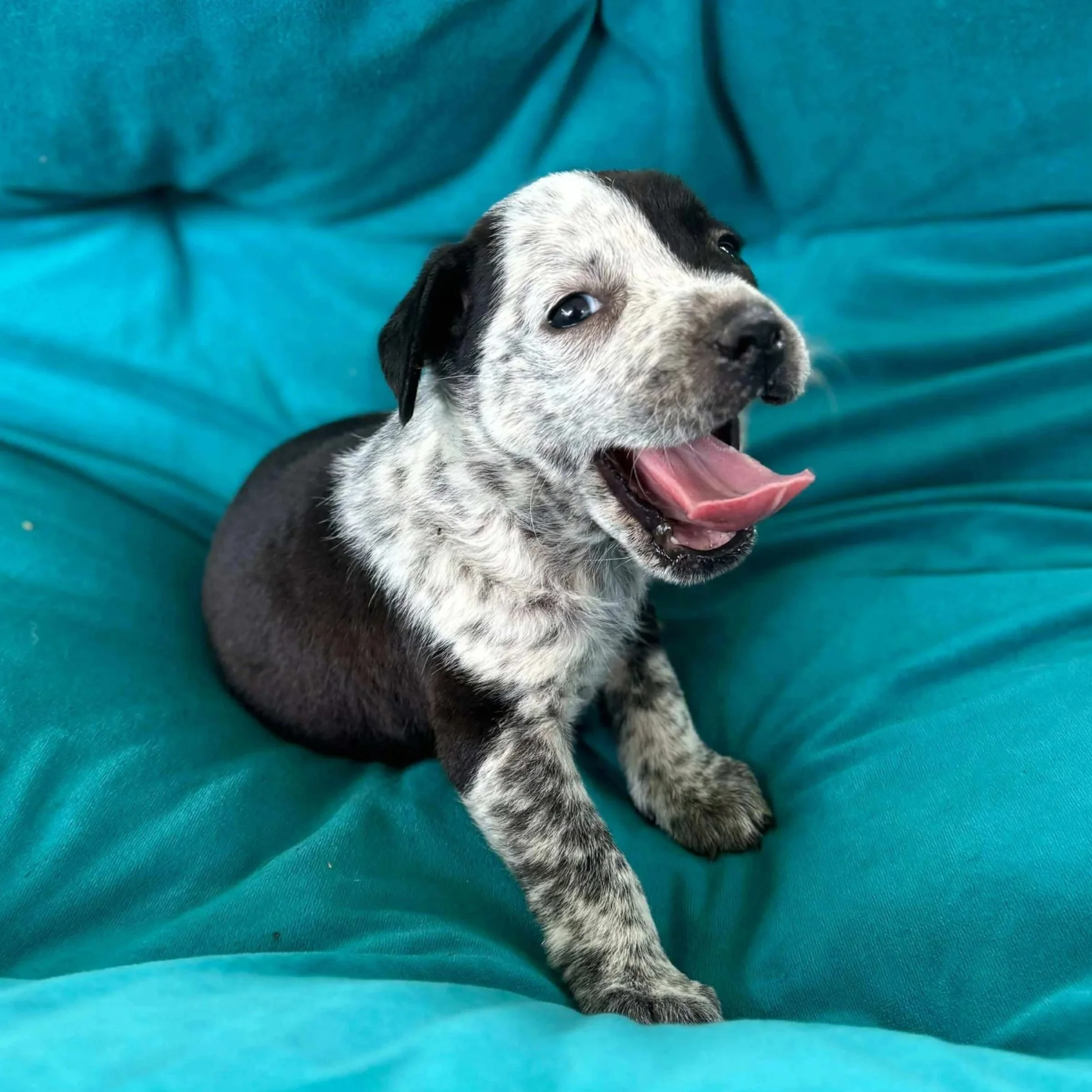 Clover is a 3-month-old, female currently weighing about 8 pounds. We believe that she may be a Cattle Dog and Pit mix who will grow into a medium-sized adult dog! For now, she's an adorable, spirited puppy who is full of potential.