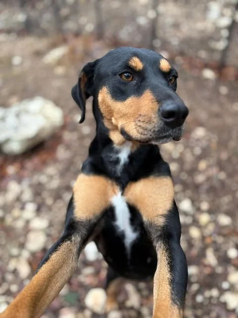 Meet Fiona! This sweet 1-year-old, 47lbs Labrashep (Labrador Retriever + German Shepherd) girl is full of love and personality! She absolutely adores her humans and has the cutest habit of standing on her back legs just to give the best hugs.