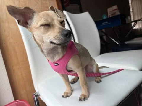 Meet Juniper — a tiny (8 lb) Chihuahua mix with best friend energy. She’s equal parts playful and snuggly: give her a soft toy to pounce on, a hard chew to work on, and then she’s happiest curled up close for cuddles. This 1.5 year old girl is ready to be someone’s princess!