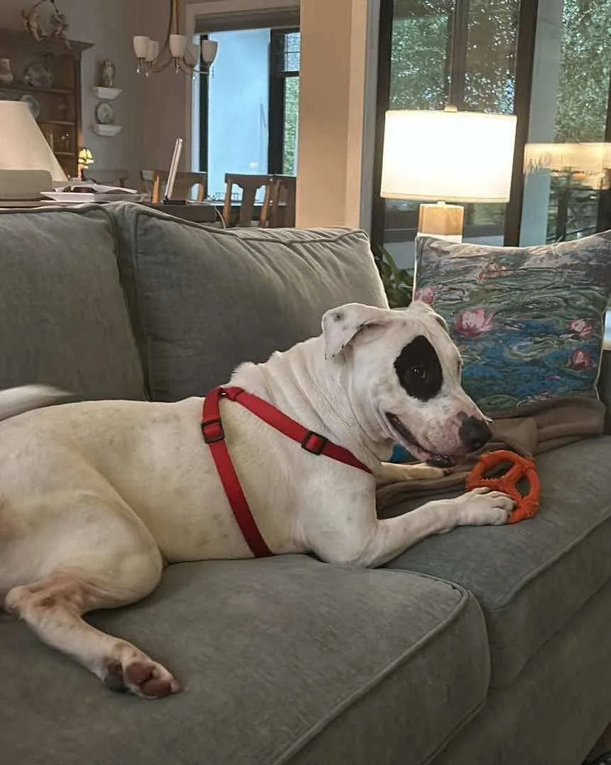 Patch would love a doggie sibling in her forever home, although it’s not essential. She does play hard, so we wouldn’t recommend her to share a home with siblings under 30lbs! She’d be happiest in a home with a secure yard or with someone who enjoys outdoor activities and can keep up with her playful, loving nature.