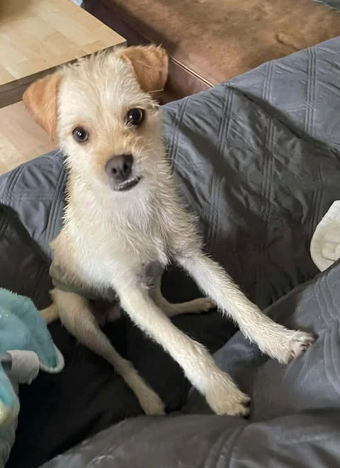 Meet Thomas! Thomas is a playful and energetic 6-month-old terrier mix weighing about 12 lbs. This little guy is full of puppy spirit and loves to run around the yard and wrestle with his foster siblings. He is also very loving and likes to cuddle with his humans.